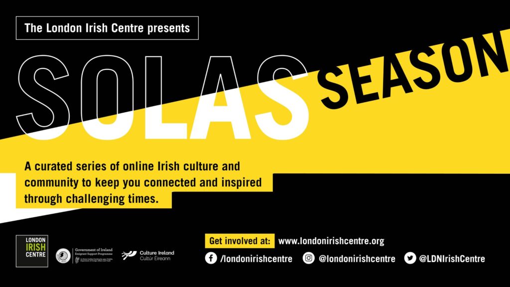 Delighted to announce that I have written a new poem in response to these remarkable times we find ourselves in (and created an accompanying little film to go with it). It will debut later this week as part of the London Irish Centre’s new curated series entitled SOLAS. Stand by…
