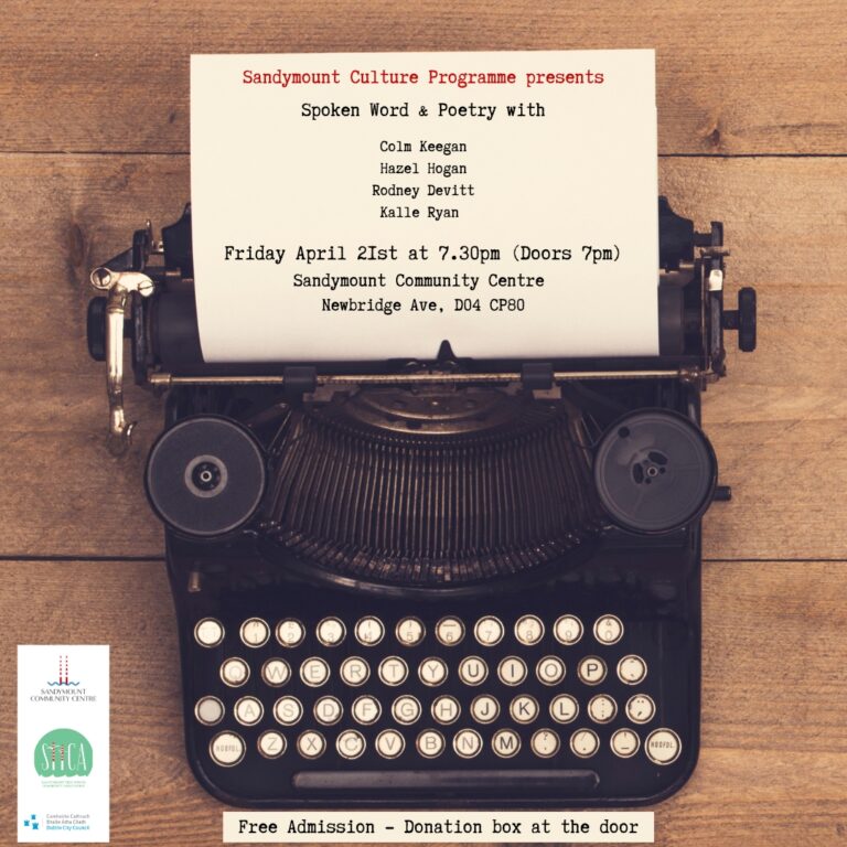 Come along to the upcoming poetry and spoken word show at Sandymount Community Centre. I will be MCing and we have a great lineup