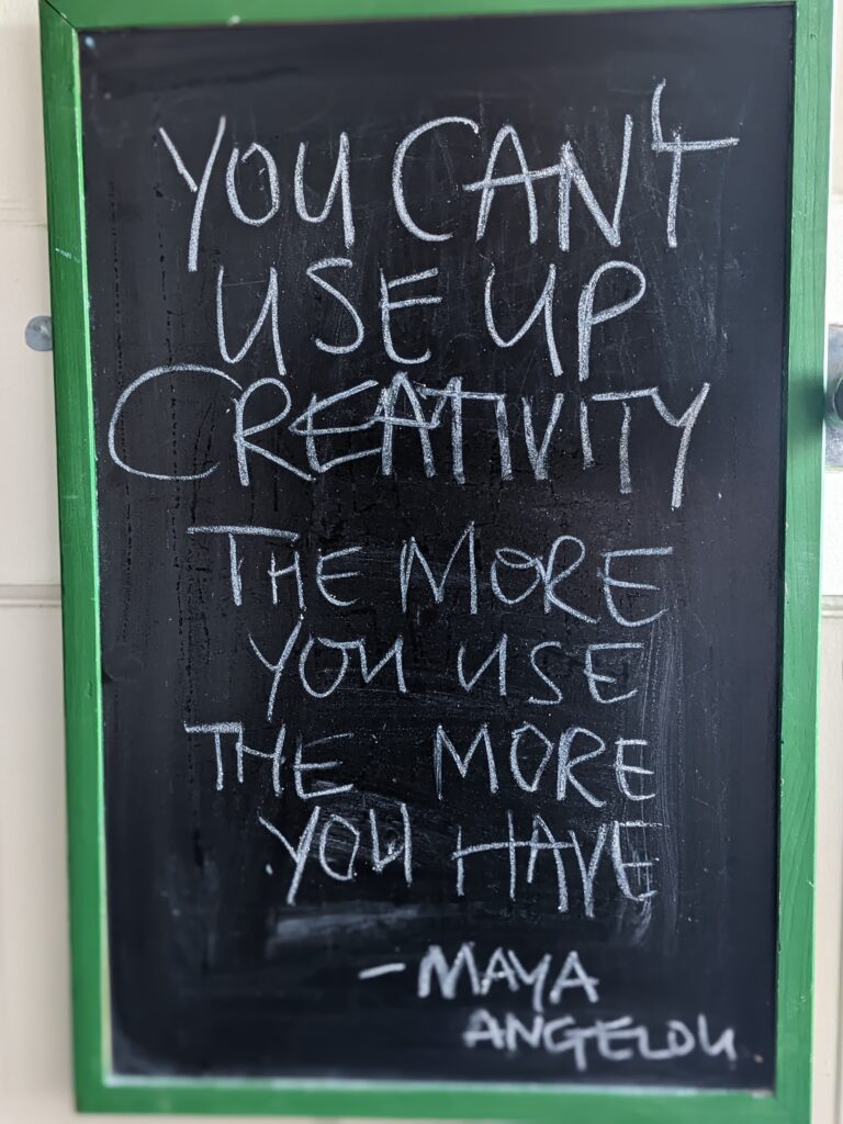 Chalkboard Quote #10 – Maya Angelou on creativity Posted on 8 September 20222 February 2023 by kalleryan Today’s inspirational quote on the chalkboard comes from the late, great Maya Angelou
