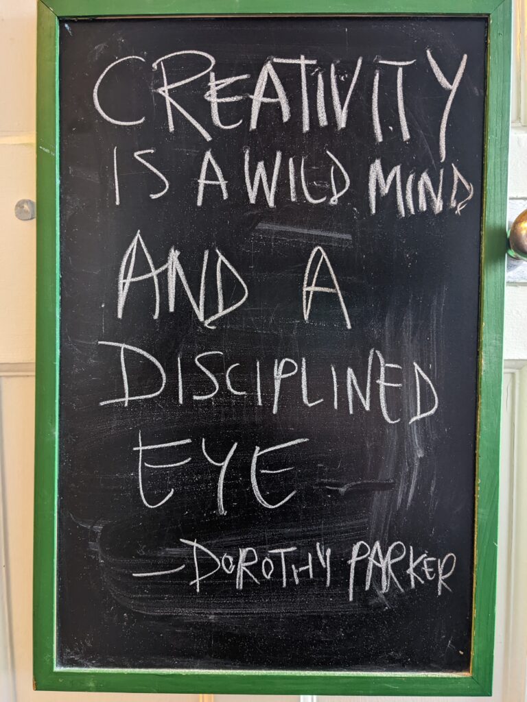Chalkboard Quote #9 – Dorothy Parker on creativity Posted on 20 July 202221 October 2023 by kalleryan Today’s thought to ponder about creativity on my chalkboard.