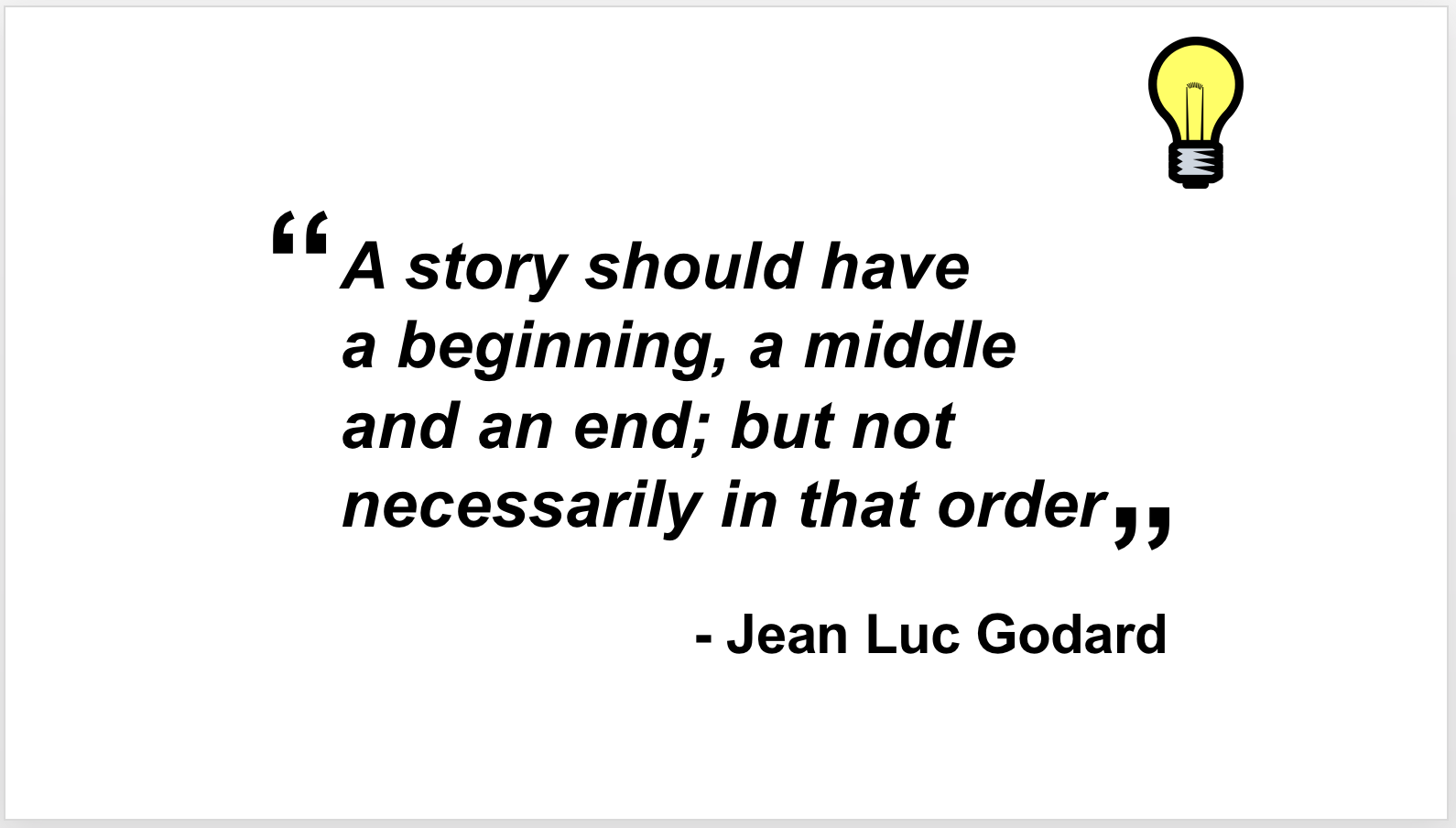 Such a great reminder to not be bound by rules and traditional forms. Play with it. Beyond Godard, modern cinema has so many great examples of it – like Memento by Christopher Nolan, Pulp Fiction by Quentin Tarantino or Rashomon by Akira Kurosawa – and contemporary television shows like True Detective and Westworld thrive on non-linear storylines.