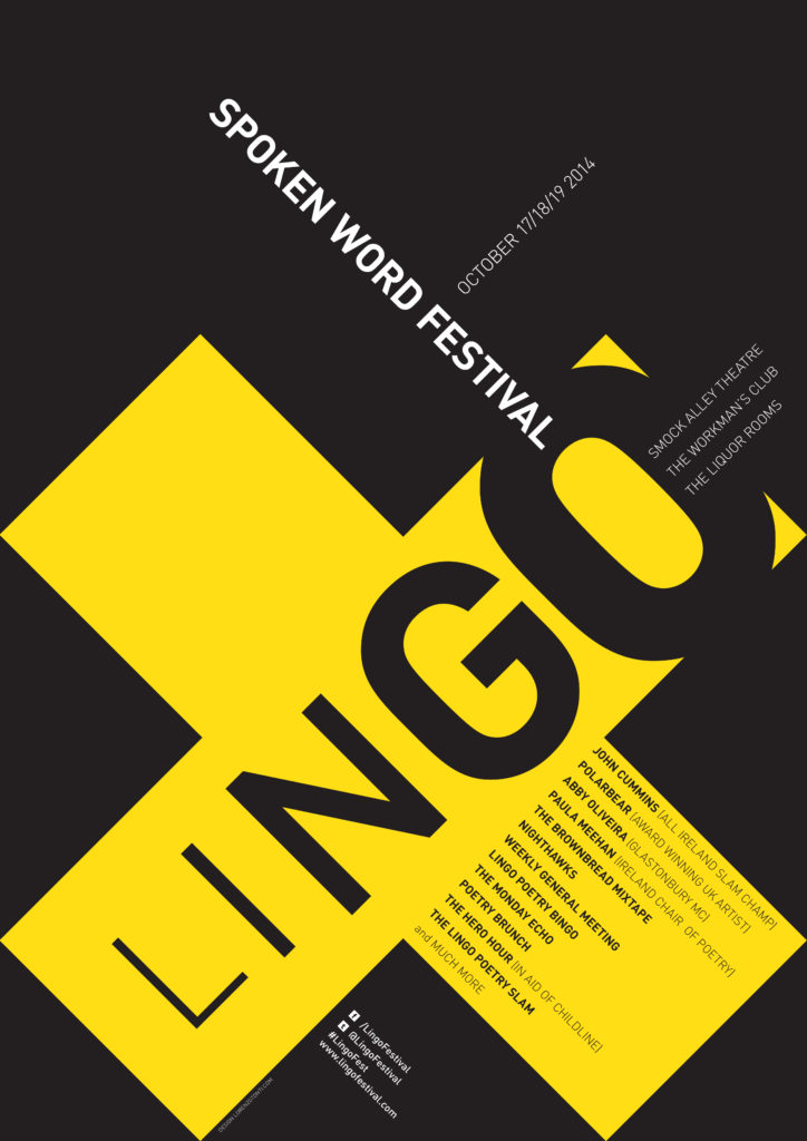 Back in 2014, myself, Erin Fornoff, Colm Keegan, Linda Devlin, Phil Lynch and Stephen James Smith founded and ran Ireland’s first ever (and only) spoken word festival, and it ran for three glorious years. It was a wild, wonderful rollercoaster of a journey that is worthy of a much longer post. But for now , marvel at some of these beautiful posters designed by Lorenzo Tonti.