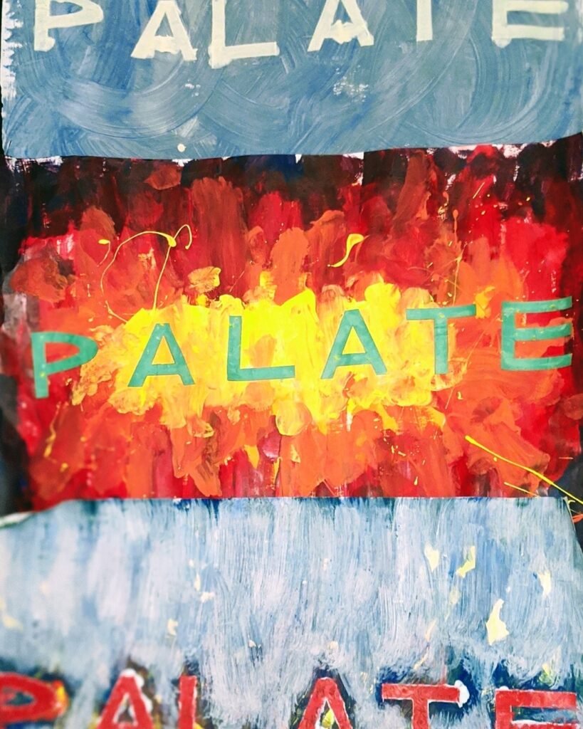More oddball New York-era paintings of mine from the start of the millennium that I found in the attic. I think I was trying to say something profound about words (palate) and painted visuals (palette).