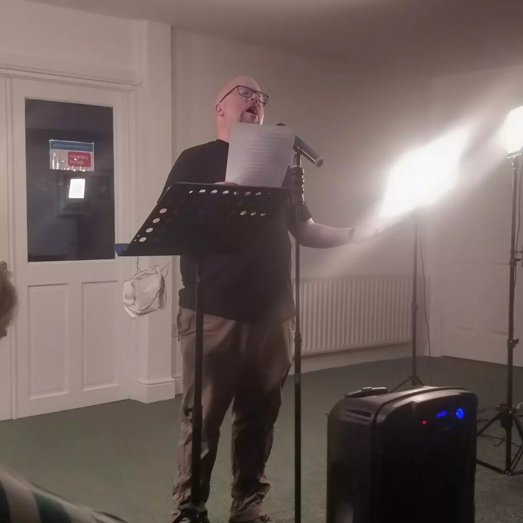 Performing Poet Posted on 22 April 202312 May 2023 by kalleryan A couple of snaps of me in full poetry flow at last night’s spoken word/poetry evening at the Sandymount Community Centre. A beautiful evening with a warm friendly crowd. Art is good for the heart.