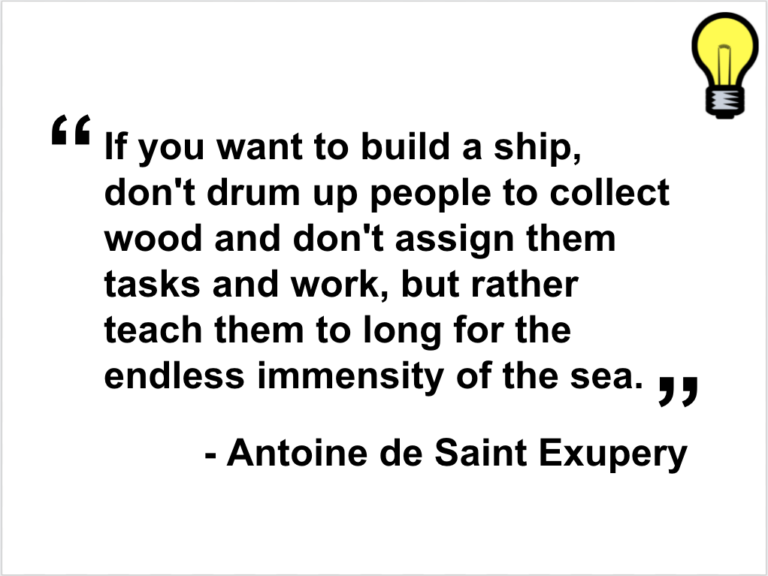 I always loved this quote about creative aspirations by Antoine De Saint-Exupéry