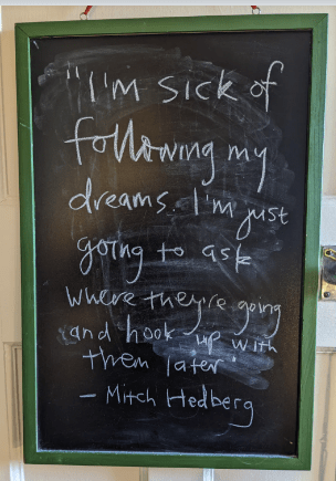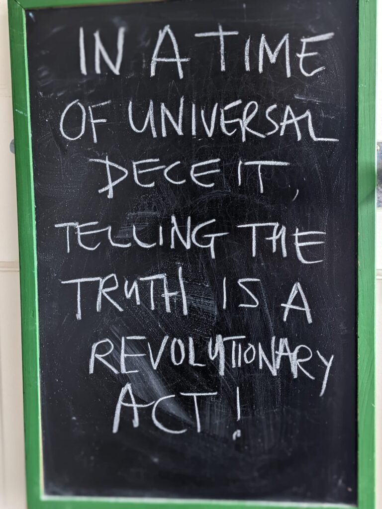 Today’s quote on the chalkboard is from an unknown source, but has often been attributed to George Orwell. Either way, it feels more relevant than ever.