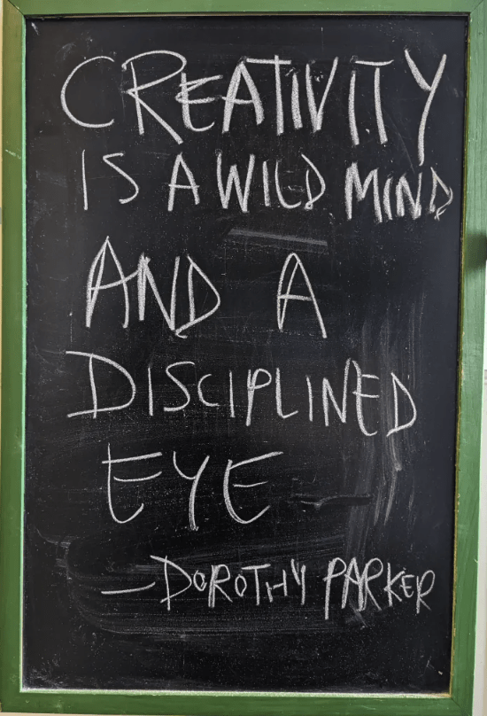 Today on the chalkboard I have written a quote by Herman Melville (author of Moby Dick) that celebrates the important idea of always being willing to try something new creatively. It is always a far more satisfying learning experience.