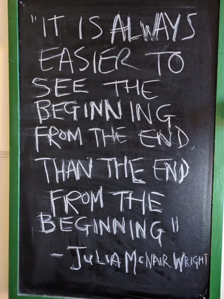 Today’s inspirational quote on the chalkboard comes from the popular 19th Century American writer Julia McNair Wright. It seems like a fitting choice for where I currently find myself on my creative journey.