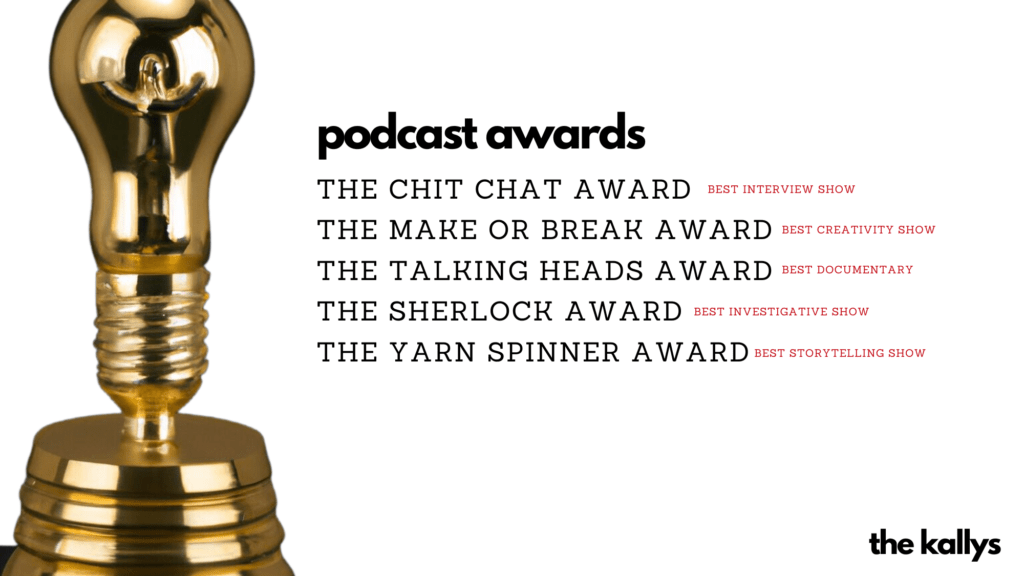 Following on from my recent post about my favourite TV & Streaming content in 2023, I wanted to share a similar (albeit much shorter) list of my favourite podcasts this year. Like the previous post, rather than creating a standard end of year list, I thought it might be amusing to dress up my “best of list” in the form of my own completely subjective awards: the kallys®. You can jot down the names of the shows below, or download this nifty PDF cheat sheet if you prefer. The focus here is firmly on human stories and the art of authentic storytelling, so if that’s your jam, then this list is for you. So, without further ado, here are the kally awards® for outstanding achievement in podcasting.