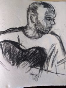 Spotted this the other night as I was flicking through one of my dad’s final sketchbooks. To me this sketch is a haiku that folds a whole universe into it. This was the last time he drew me and it is a great snapshot of a fond moment. Drawn on a sweltering humid day in the apartment I was subletting in Brooklyn. The air conditioner was broken, so we cracked open some ice cold Red Stripe beers we picked up at the Jamaican corner store. He sketched with charcoals while I played Bob Dylan songs badly. His hand starting to tremor already, but his eye still keen, and the lines still quite certain. By the next summer when he came to visit me, he was unable to draw any more due to his illness and he filled his days going to the Met and the MoMA to marvel at the masters instead. Happy times.